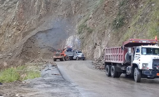 Cerca de 500 metros cúbicos de piedra y tierra del derrumbe en el sitio crítico Ingamullo II restan por desalojar para habilitar la vía Gualaceo – Plan de Milagro, cerrada debido a los deslizamientos continuos en la zona.