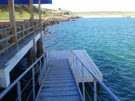 Los trabajos realizados en el muelle flotante fueron el retiro del sistema de sujeción que quedó sumergido luego del desprendimiento del pontón flotante; reparación del pontón flotante y cambio de tres boyas averiadas; izado de la escala real para la reparación y mantenimiento; y la fabricación de elementos de acero inoxidable que se realizaron en Guayaquil.