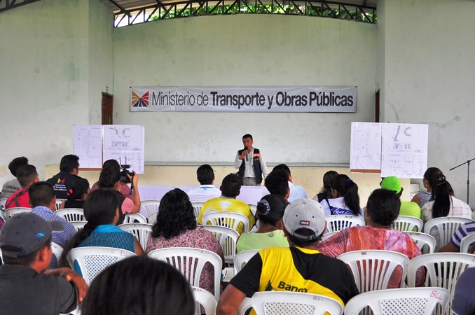 Ing. Omar Chamorro – viceministro de Infraestructura del Transporte – brinda explicación técnica sobre la construcción de puentes a los habitantes de Orellana