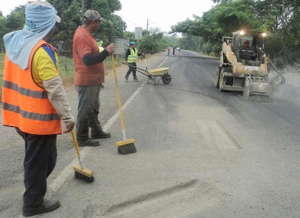 Guayas.- El Ministerio de Transporte y Obras Públicas (MTOP), a través de la contratista Verdú empezó trabajos de reparación de la carpeta asfáltica de la vía Salitre – Vernaza – Tres Marías, de 14km.