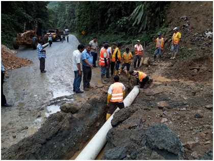 Colocación de tubería en la vía Saracay – Piñas, sector Las Bateas.