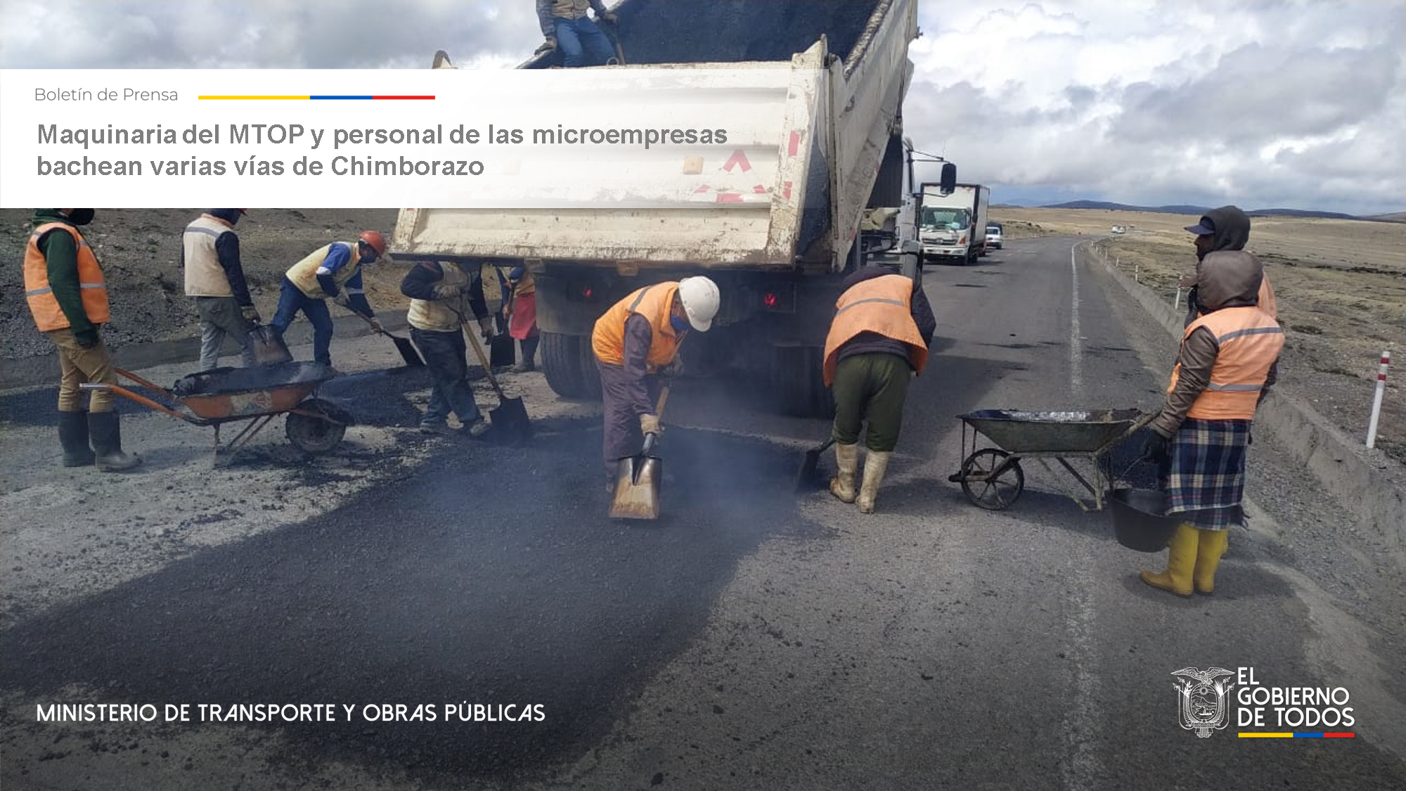 Con el objetivo de mantener expeditas las vías de Chimborazo, maquinaria del Ministerio de Transporte y Obras Públicas (MTOP) y personal de las asociaciones de conservación vial ejecutan labores de bacheo en 119,2 kilómetros de la Red Vial Estatal (RVE).
