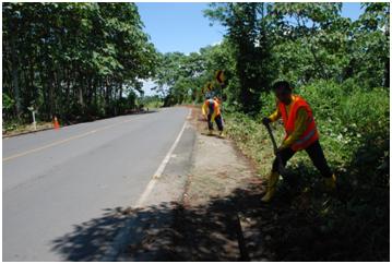 Quince trabajadores oriundos de los sectores aledaños al anillo vial rural ejecutan la limpieza y reparación de cunetas, inspección y mantenimiento de puentes, roza a mano, control de vegetación; y limpieza de derrumbes y alcantarillas. Los trabajos iniciaron el 01 de abril del 2013, por el lapso de 5 meses.