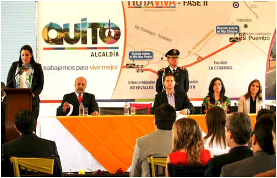 Además indicó que, la actual administración gubernamental, durante los últimos ocho años ha entregado alrededor de 730 millones de dólares para financiar el Acceso Sur de Quito, Ruta Collas, ampliación de la vía Calderón – Guayllabamba y la rehabilitación de la avenida Manuel Córdova Galarza.