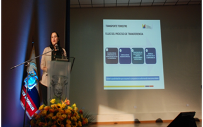 En lo que tiene que ver con la gestión del transporte terrestre, la secretaria de Estado enfatizó que el MTOP coordina con varias instituciones el proceso de transferencia de competencias como: matriculación de las unidades vehiculares, entrega de permisos de operación o títulos habilitantes, y el control del tránsito.
