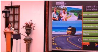 La secretaria de Estado, además anunció las grandes obras viales que se ejecutan en la provincia de Tungurahua como: Estabilización de taludes del paso lateral de Ambato, construcción de la vía Cahuají – Pillate – Cotaló, y el mantenimiento por resultados de la vía Pelileo – Baños – Puyo, a través de las cuales es posible reducir el costo de operación vehicular optimizando el tiempo de traslado.