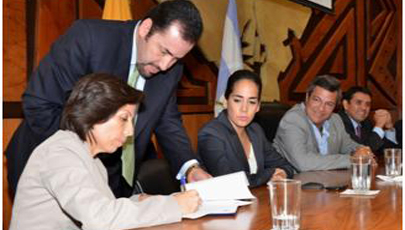 En el auditórium del Gobierno provincial del Guayas, con la presencia de la ministra de Transporte y Obras Públicas, Arq. María de los Angeles Duarte; el secretario Nacional del Agua, Ing. Walter Solís; la gobernadora de la provincia, Ab. Viviana Bonilla; el prefecto del Guayas, Lcdo. Jimmy Jairala; el director nacional del servicio de Dragado de SENAGUA, Cmte. Byron San Miguel, entre otras autoridades gubernamentales, ayer se suscribió el Convenio de Cooperación Interinstitucional para el dragado del río Guayas “Islote el Palmar”, a fin de solucionar el problema de sedimentación presentado en este sector.