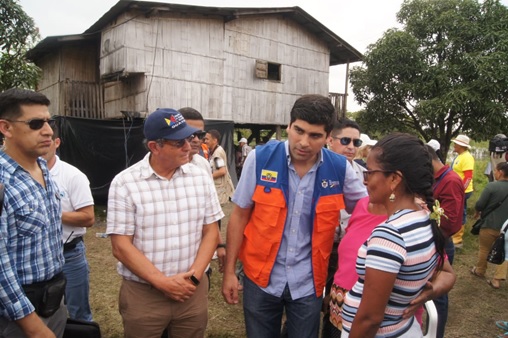 Atendiendo a las familias afectadas de El Laurel, el ministro Aurelio Hidalgo con el vicepresidente Otto Sonnenholzner.