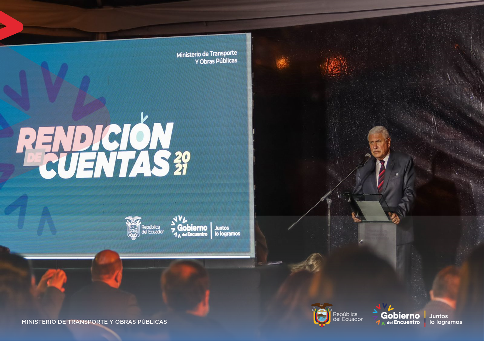 En la estación ferroviaria de Chimbacalle, el ministro de Transporte y Obras Públicas, Marcelo Cabrera, la noche de hoy, 28 de marzo de 2022, rindió cuentas a la ciudadanía de la gestión realizada en el año 2021.