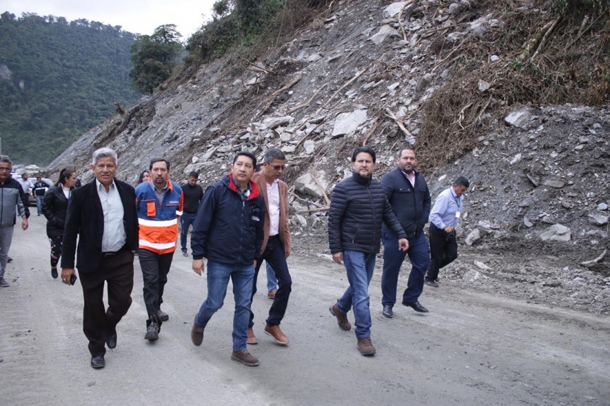 Durante el recorrido, el ministro (S) Martínez constató: la habilitación del puente Bailey sobre el río Guango, el estado de la vía en el sector denominado Maspa y la construcción de las variantes en los sectores de Yahuana y Laureles, cuyo avance registra un estimado de 22.000 m3 de material excavado, producto del desbroce de taludes.