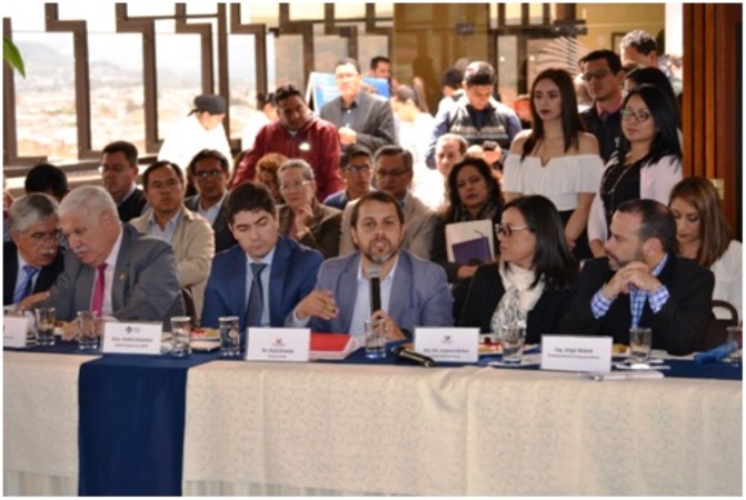 Azuay.- varias organizaciones del sector productivo de Cuenca, se reunieron la mañana de este lunes 5 de junio con el ministro de Transporte y Obras Públicas, Paúl Granda y el presidente del Directorio de la Empresa Coordinadora de Empresas Públicas, Jorge Wated, en la Cámara de Industrias de Cuenca.