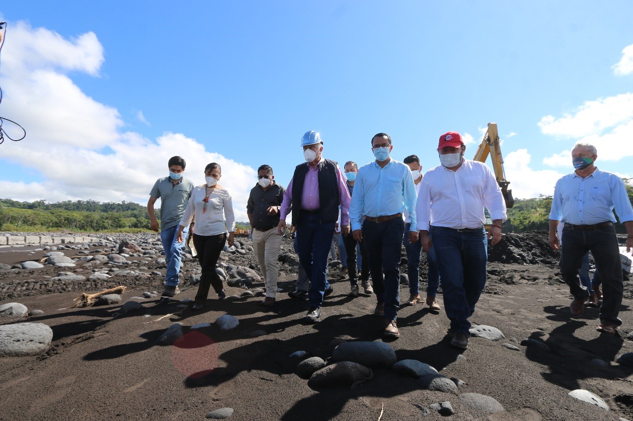 Durante el segundo día de visita recorrió la margen del río Upano en la zona cercana al puente y evidenció la cantidad de material que es arrastrado por la corriente y que ha provocado los desbordamientos del caudal y la destrucción de 160 metros de la vía Macas-Puyo.