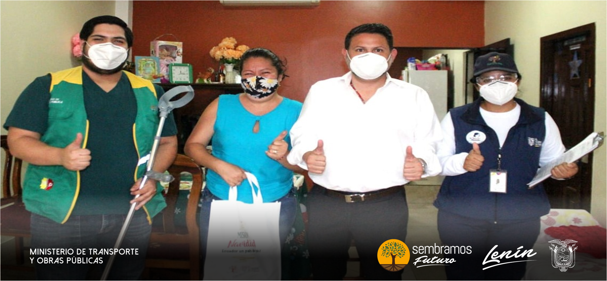 Como parte del proyecto Misión Navidad Sin Mendicidad que impulsa el presidente Lenin Moreno para proveer asistencia a la población vulnerable del país, el ministro de Transporte y Obras Públicas, Gabriel Martínez, entregó hoy, jueves 17 de diciembre de 2020, ayuda técnica a una persona con discapacidad en el sector de Bastión Popular.