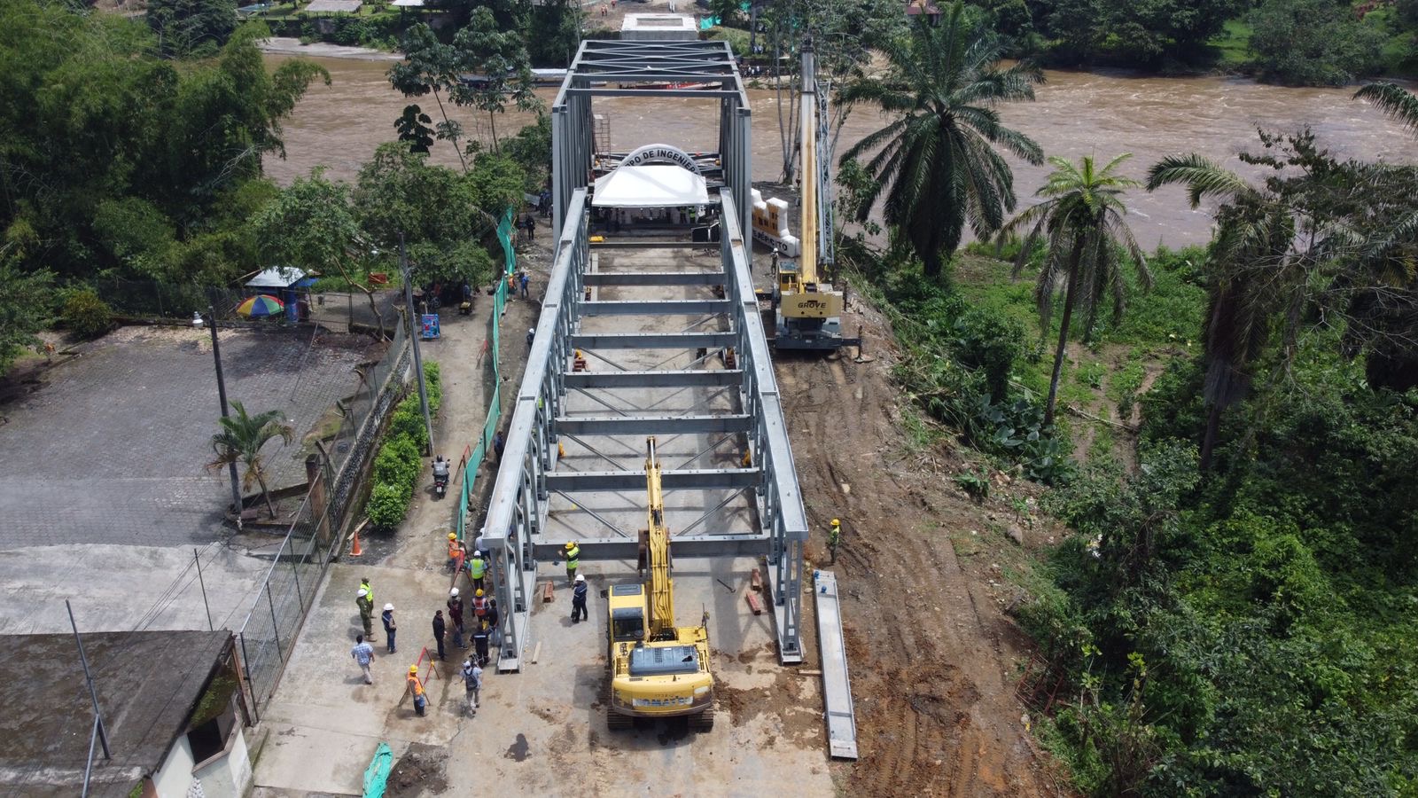 Hay el compromiso de agilitar la colocación del puente que medirá 125 metros y pesa más de 300 toneladas. Al momento, se avanza en el ensamblado de la celosía (estructura para el puente) por el margen derecho, por el lado de La Concordia.