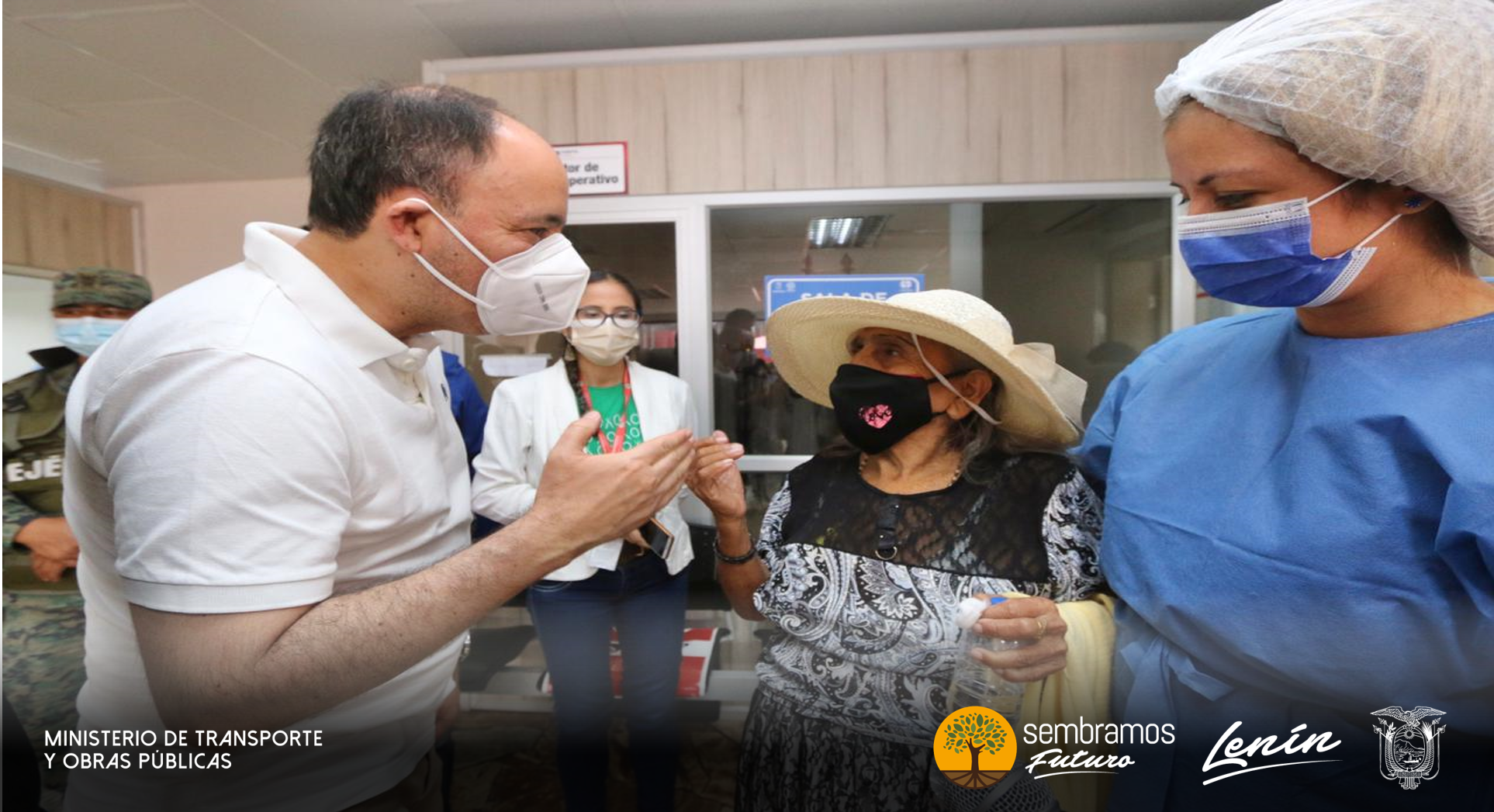 Marcelo Loor Sojos, ministro de Transporte y Obras Públicas (MTOP) cumple agenda en Portoviejo. En su visita al cantón, constató el proceso de vacunación a ciudadanos que recibieron su segunda dosis en el exaeropuerto Reales Tamarindos, dentro del Plan Vacunarse, que impulsa el Gobierno Nacional.