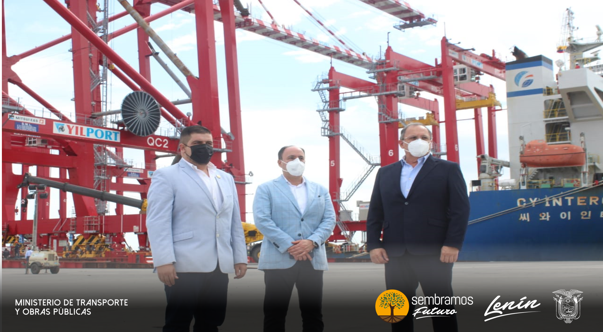 La tarde de hoy, 30 de marzo de 2021, el ministro de Transporte y Obras Públicas, Marcelo Loor, junto al gobernador de El Oro, Danny Gámez; al prefecto de la provincia, Clemente Bravo y, demás autoridades, participó en el evento de colocación del primer pilote para la construcción del muelle No. 6, y el arribo de dos grúas STS y seis grúas pórtico RTG a la Terminal Portuaria de Puerto Bolívar.