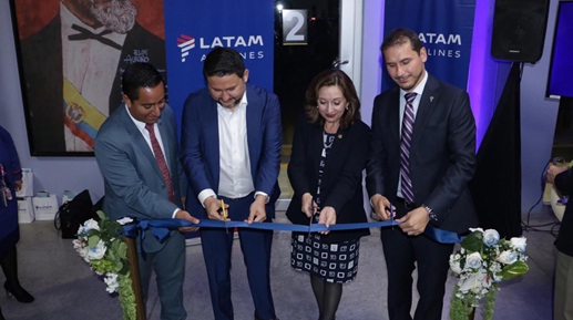 El Ministro Gabriel Martínez, junto a Rosi Prado de Holguín, ministra de Turismo, y otros funcionarios, solemnizaron el vuelo inaugural de Latam.