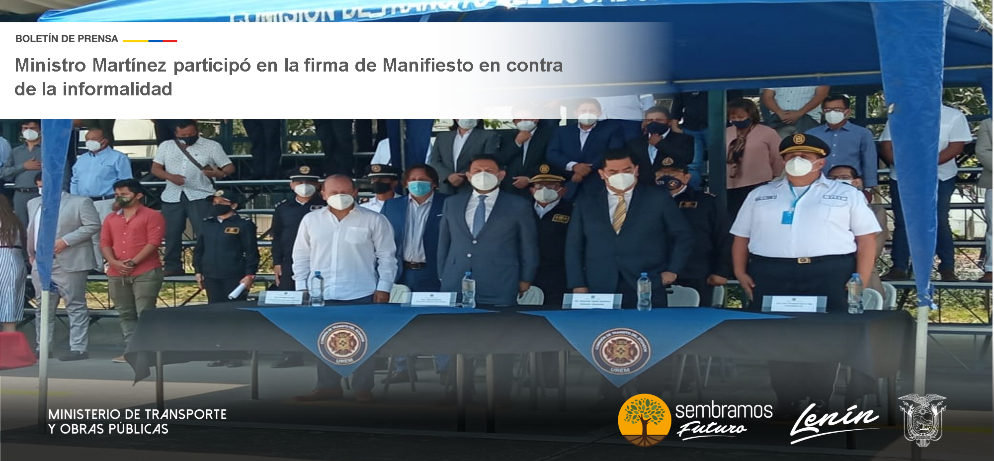 Este miércoles 21 de octubre de 2020, el ministro de Transporte y Obras Públicas, Gabriel Martínez, participó como testigo de honor en la firma del Manifiesto entre la Comisión de Tránsito del Ecuador (CTE) y la Federación Nacional de Transporte Pesado del Ecuador (FENATRAPE), el cual permite que ambas instituciones cuenten con una herramienta de ayuda mutua para efectuar operativos de control eficientes, prevenir la informalidad y como resultado reducir la siniestralidad en el país.