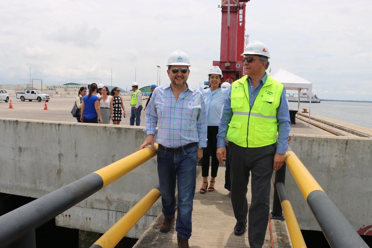 Finalmente verificó el lugar dónde se construirá el muelle número 6, que permitirá incrementar las exportaciones de banano y camarón, además de fortalecer la actual terminal de Puerto Bolívar.