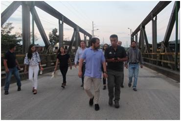 El secretario de Estado constató los daños provocados por la crecida de los ríos Tena y Pano que afectaron la infraestructura del puente sobre el río Tena. Al momento se ejecutan tareas de encausamiento del río y posteriormente se reforzarán los cimientos que se socavaron por la fuerza de la naturaleza.
