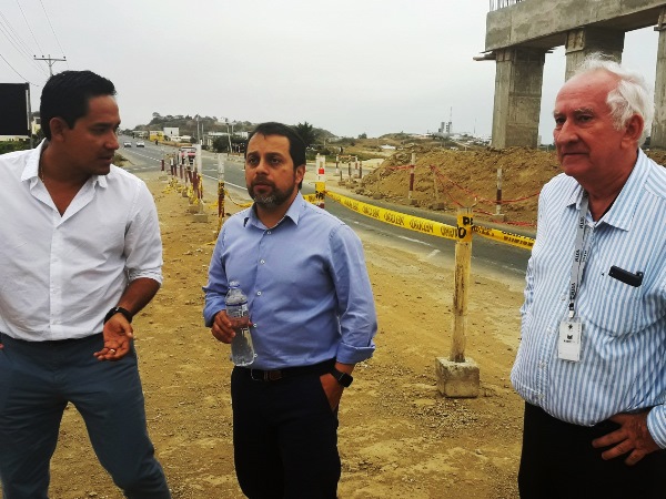 En el distribuidor de San Pablo, el ministro Paúl Granda junto al subsecretario Zonal 5, Hugo Valle, y el director de Santa Elena, Martin Dunn