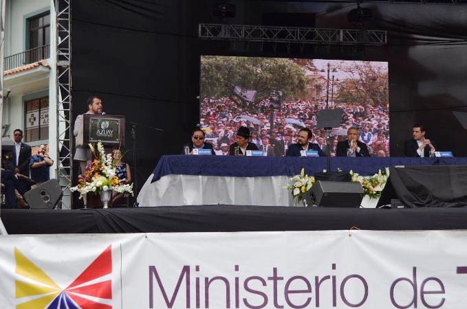 El evento que se desarrolló en los exteriores del parque San Blas en Cuenca, contó con la presencia del presidente de la República Lenín Moreno; del ministro de Transporte, Paúl Granda; del ministro subrogante de Electricidad, Miguel Barreno; y del prefecto del Azuay, Paúl Carrasco. También estuvo presente Humberto Cholango, Secretario del Agua, quien suscribió varios convenios de riego con la prefectura y juntas regantes de la provincia.