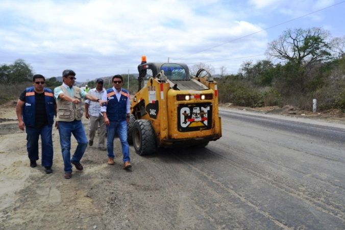 Manabí.- El Ministro de Transporte y Obras Públicas, Ing. Walter Solís, constató este martes (20) los trabajos de reconformación y reconstrucción de la Red Vial Estatal que une las provincias de Guayas y Manabí en el tramo que comprende desde Montecristi – La Pila – Jipijapa – La Cadena.