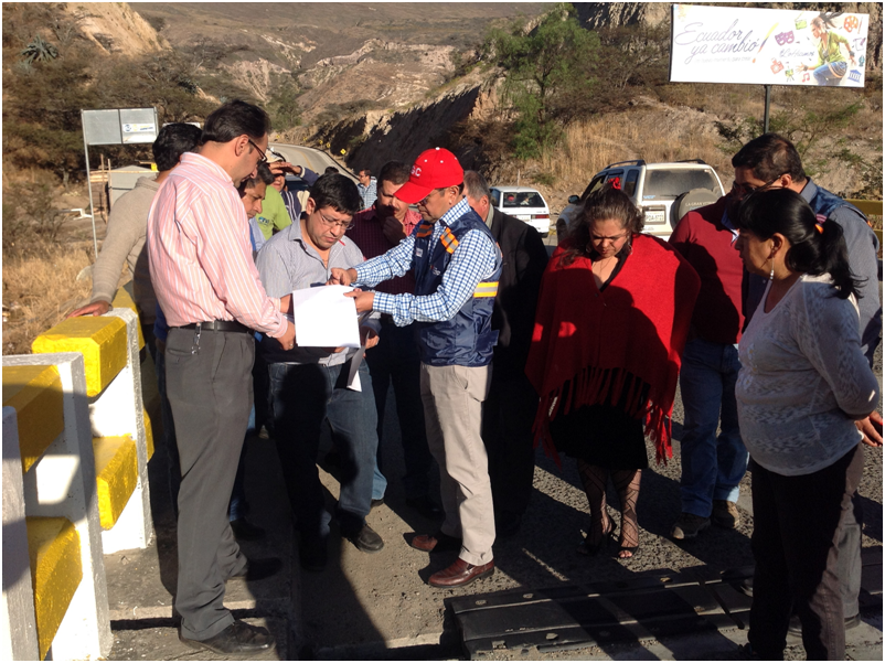 En compañía del subsecretario regional 6, del MTOP, Ing. Boris Palacios, el director provincial del Azuay, Ing. Joaquín Peña y la alcaldesa de Oña, Germania Ullauri recorrieron el puente para constatar el avance de los estudios técnicos, que tienen una inversión de aproximadamente 600 mil dólares.