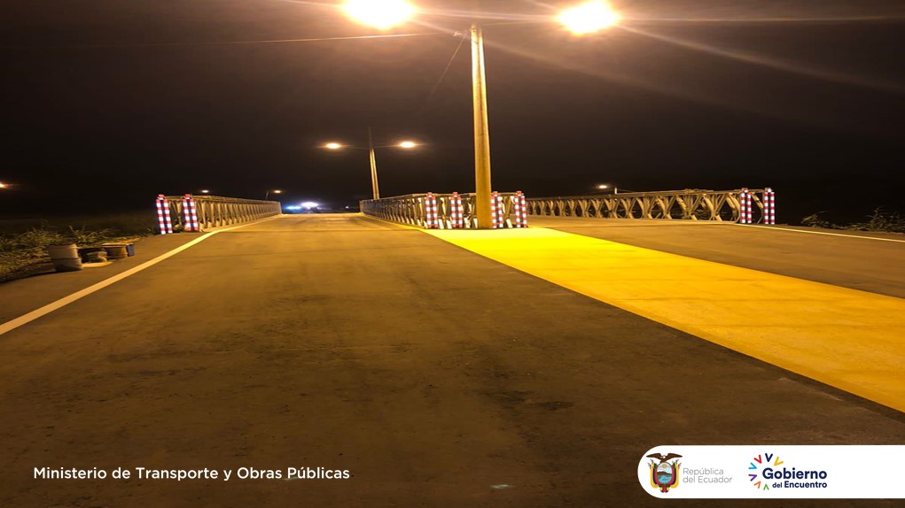 El Ministerio de Transporte y Obras Públicas (MTOP) avanza en la colocación de los dos puentes provisionales tipo bailey sobre la vía Jipijapa – La Pila, en el sector Quimís, en Manabí. Está previsto que en los próximos días se habilite la circulación vehicular. Yuver Molina, Subsecretario Zonal 4 del MTOP, calculó que un promedio de 10 000 vehículos transita diariamente por esta vía.