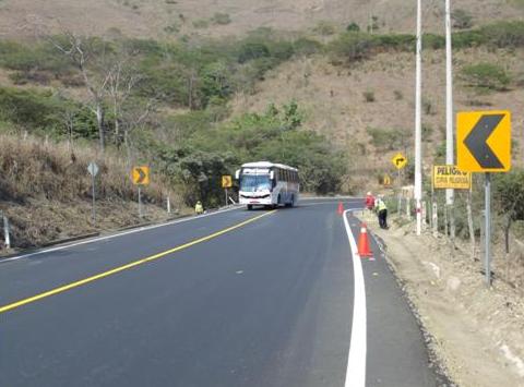 Actualmente en el tramo que comprende Piñas – El Pache de 8.5 km. de longitud aproximadamente, se ha concluido la colocación de la carpeta asfáltica y señalización horizontal.