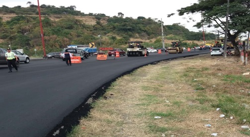 El bacheo y colocación de capa de rodadura de hormigón asfáltico, en la carretera estatal E40 La Puntilla – La Aurora – Puente Vicente Rocafuerte, de 17,80km, se ejecutan consecutivamente.