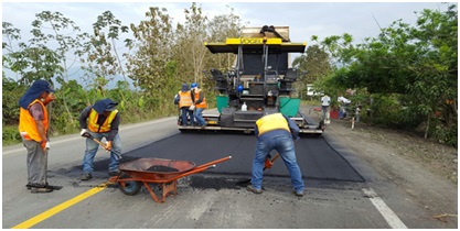 Chimborazo.- con el objetivo de mantener la Red Vial Estatal en buenas condiciones, la dirección Distrital de Chimborazo del Ministerio de Transporte y Obras Públicas (MTOP), junto a la compañía China Road and Bridge Corporation, continúa con la colocación de bacheo asfáltico en el tramo Huigra-Piedreros, desde el kilómetro 35 hasta el 72.