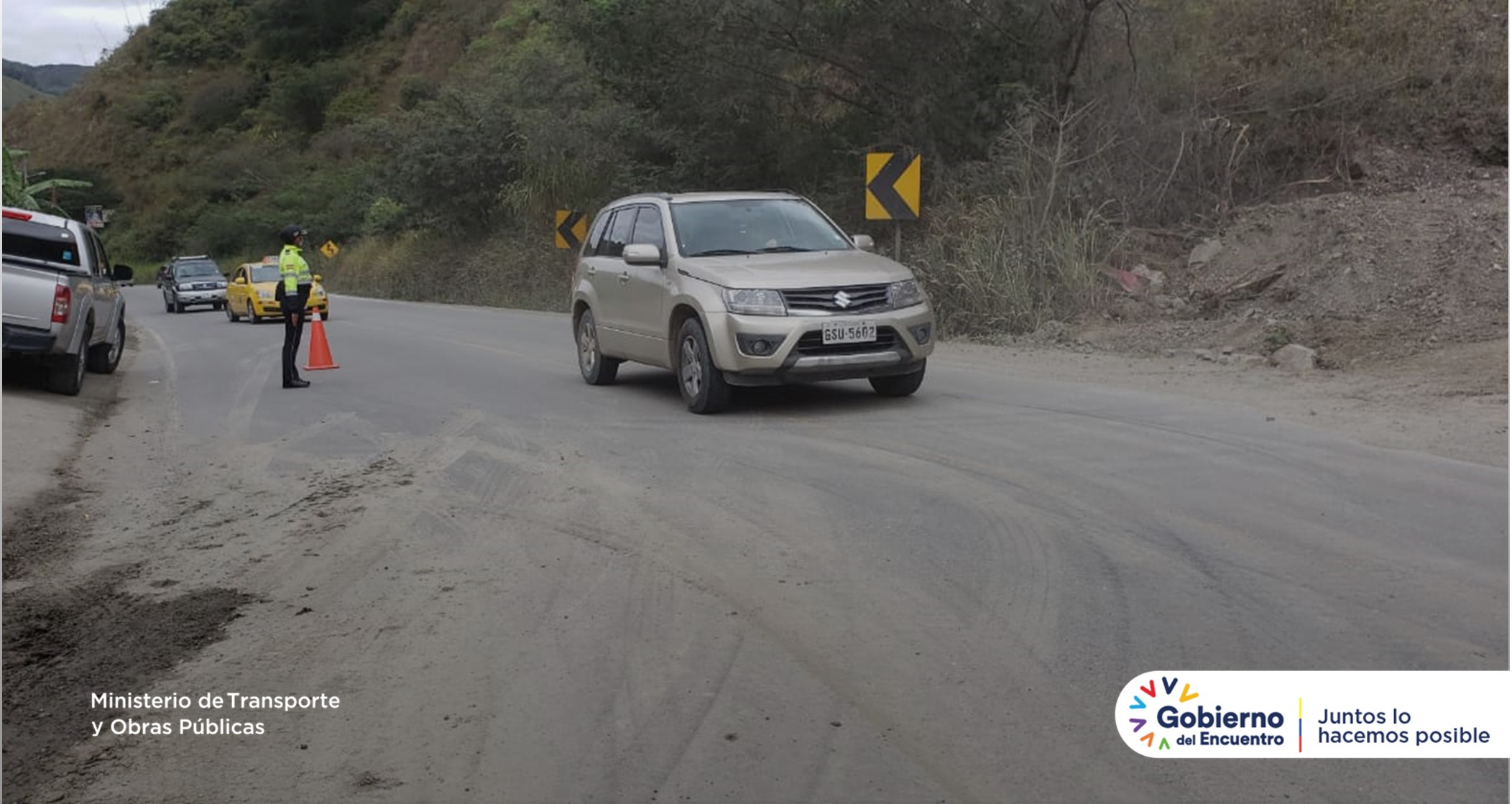 Durante la intervención vial se contó con el apoyo de la Unidad de Control Operativo de Tránsito (UCOT) para garantizar la circulación de vehículos mediante la modalidad de paso controlado desde Loja hacia los atractivos turísticos ubicados en Malacatos, San Pedro de Vilcabamaba, Vilcabamaba y Yangana.