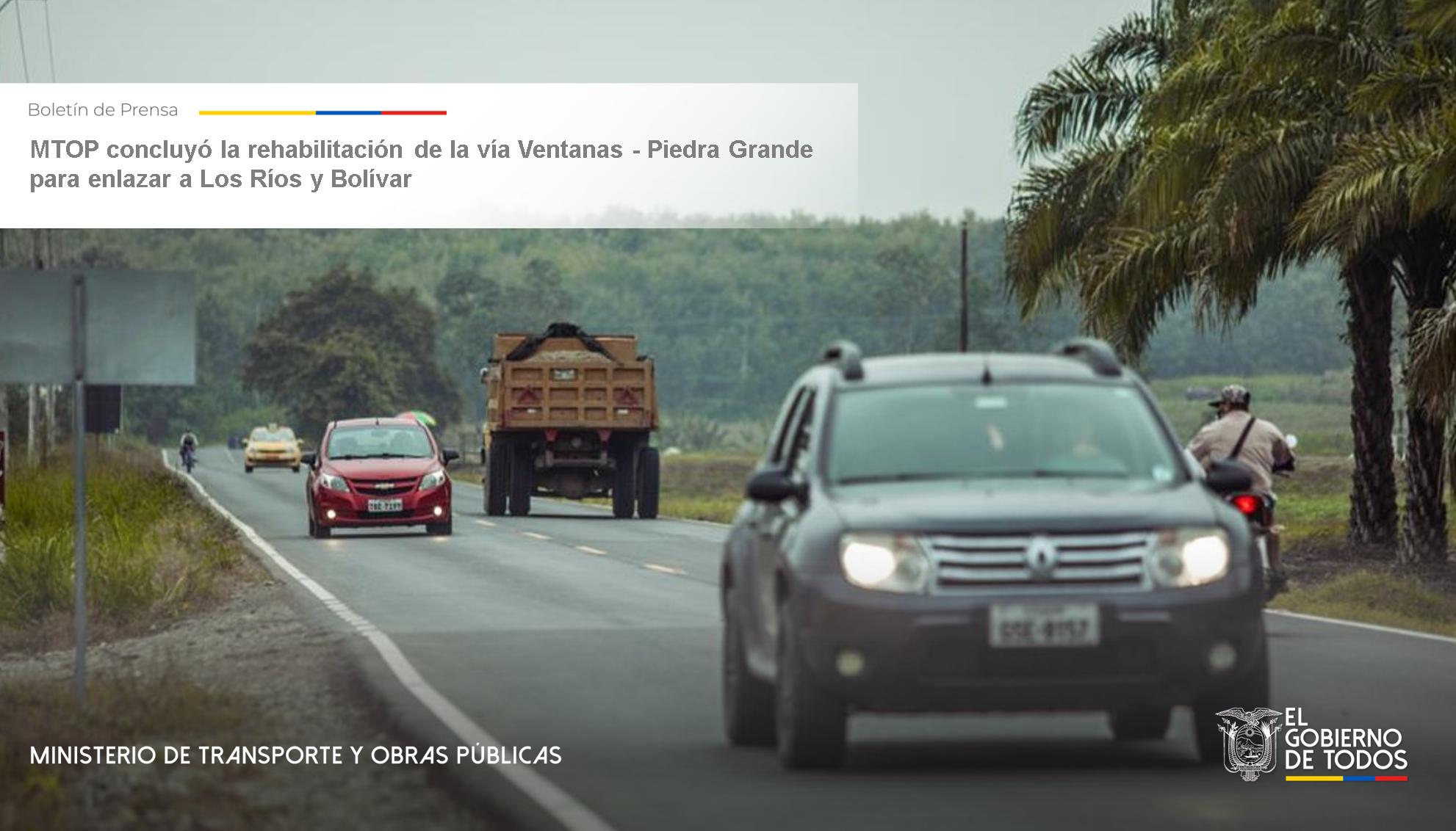 Entre las provincias de Los Ríos y Bolívar, el Ministerio de Transporte y Obras Públicas (MTOP) concluyó la rehabilitación de la vía Ventanas – Piedra Grande, de 17 kilómetros de longitud.