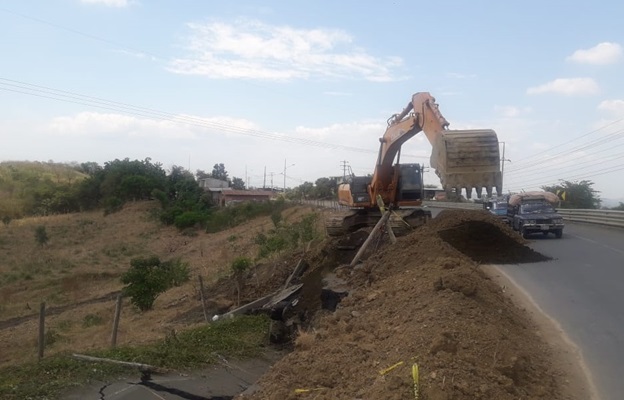 El Ministerio de Transporte y Obras Públicas (MTOP) trabaja en la recuperación del km 1 de la carretera Pitahaya – Tosagua, afectada por una falla geológica, que originó el colapso de la mesa de la vía. La vía es intervenida por administración directa.
