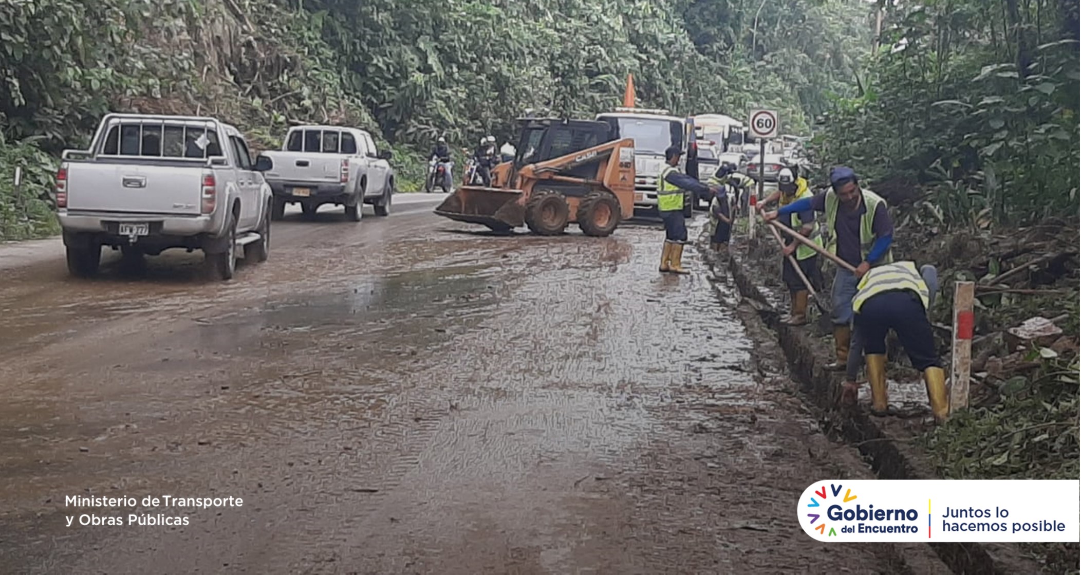 Asimismo, continúa el movimiento de tierras y limpieza de los sistemas de drenaje para proteger la estructura de las carreteras Buenavista – Vega Rivera – Paccha – Zaruma y Saracay – Balsas – Río Pindo. Para dicha intervención se destinó una cargadora frontal, una retroexcavadora, una minicargadora, dos volquetes y personal operativo y técnico de esta cartera de Estado, informó Eduardo Punín Burneo, subsecretario Zonal 7 del MTOP.