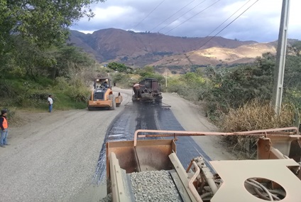 Trabajadores concluyeron la colocación de doble riego bituminoso en la vía Loja - Vilcabamba, sector San José.