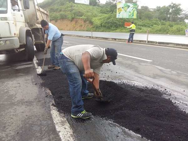 Bajo la responsabilidad de la Dirección Distrital del Guayas del MTOP, se cumplen los trabajos de bacheo en sectores afectados por la estación invernal con el fin de mejorar las condiciones de transitabilidad y evitar el estropeo de los usuarios así como el destrozo de los vehículos que circulan frecuentemente por dicho sector.