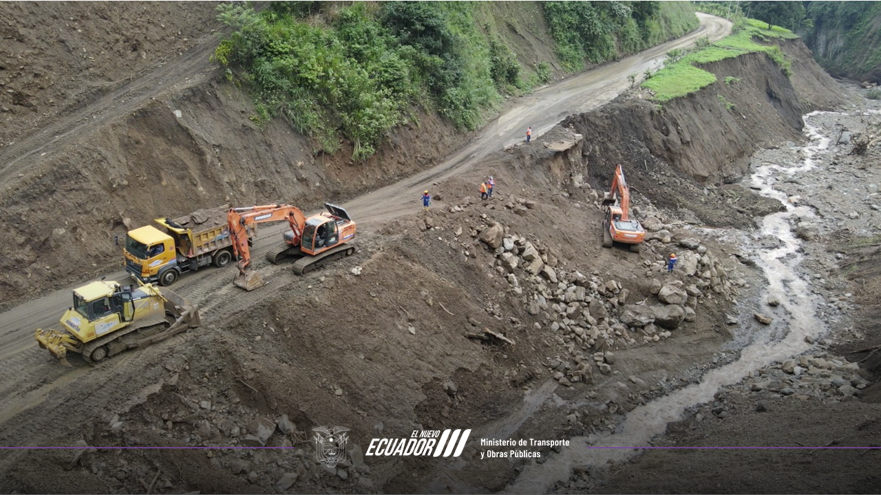 Riobamba, Chimborazo. – El Ministerio de Transporte y Obras Públicas (MTOP) conjuntamente con los Gobiernos Autónomos Descentralizados (GAD) de la provincia, ejecuta acciones articuladas para recuperar la conectividad en la vía E487, tramo Balbanera – Pallatanga – Cumandá y enlazar nuevamente a la Sierra y Costa.