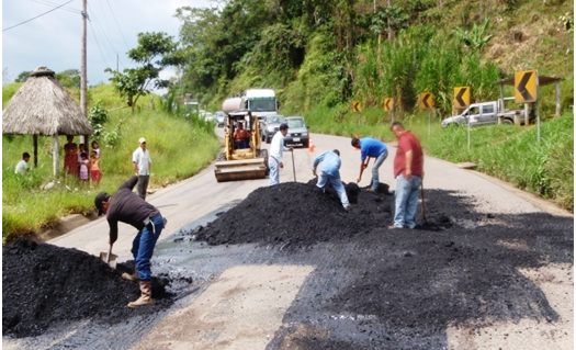 Entre las obras que se ejecutan, tenemos la preparación del suelo y de las fallas que se presentan hasta el recubrimiento con hormigón asfáltico y nivelar con el rodillo, para efectuar estos trabajos la Dirección del MTOP del Napo cuenta con los técnicos, trabajadores y operadores de la maquinaria para realizar la atención permanente hasta dejar la vía expedita sin ningún riesgo para el buen servicio de los usuarios de la misma. Importante señalar que la materia prima (asfalto) se la adquiere bajo previo pedido y entrega de los distribuidores.