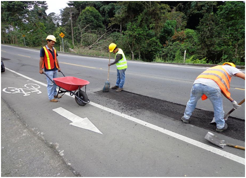Al momento se efectúan las obras de rebacheo menor, limpieza de cunetas y reposición de señalización deteriorada o faltante, rubros ejecutados con el objetivo de garantizar las condiciones favorables para el tránsito vehicular, así como la seguridad de usuarios y moradores del sector.