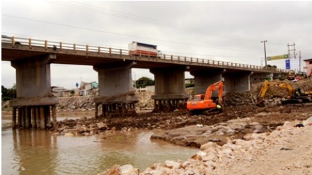MTOP ejecuta trabajos de revestimiento en las bases del puente sobre el río Jubones