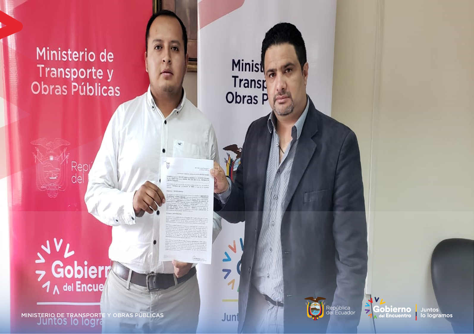 De manera simbólica, el subsecretario Eduardo Punín Burneo entregó a José Luis Caraguay Satama, representante Legal del Consorcio Dajoc, el cheque para la cimentación de esta infraestructura, ubicada en la vía Loja – Zamora a la altura del kilómetro 45, sector El Destrozo.