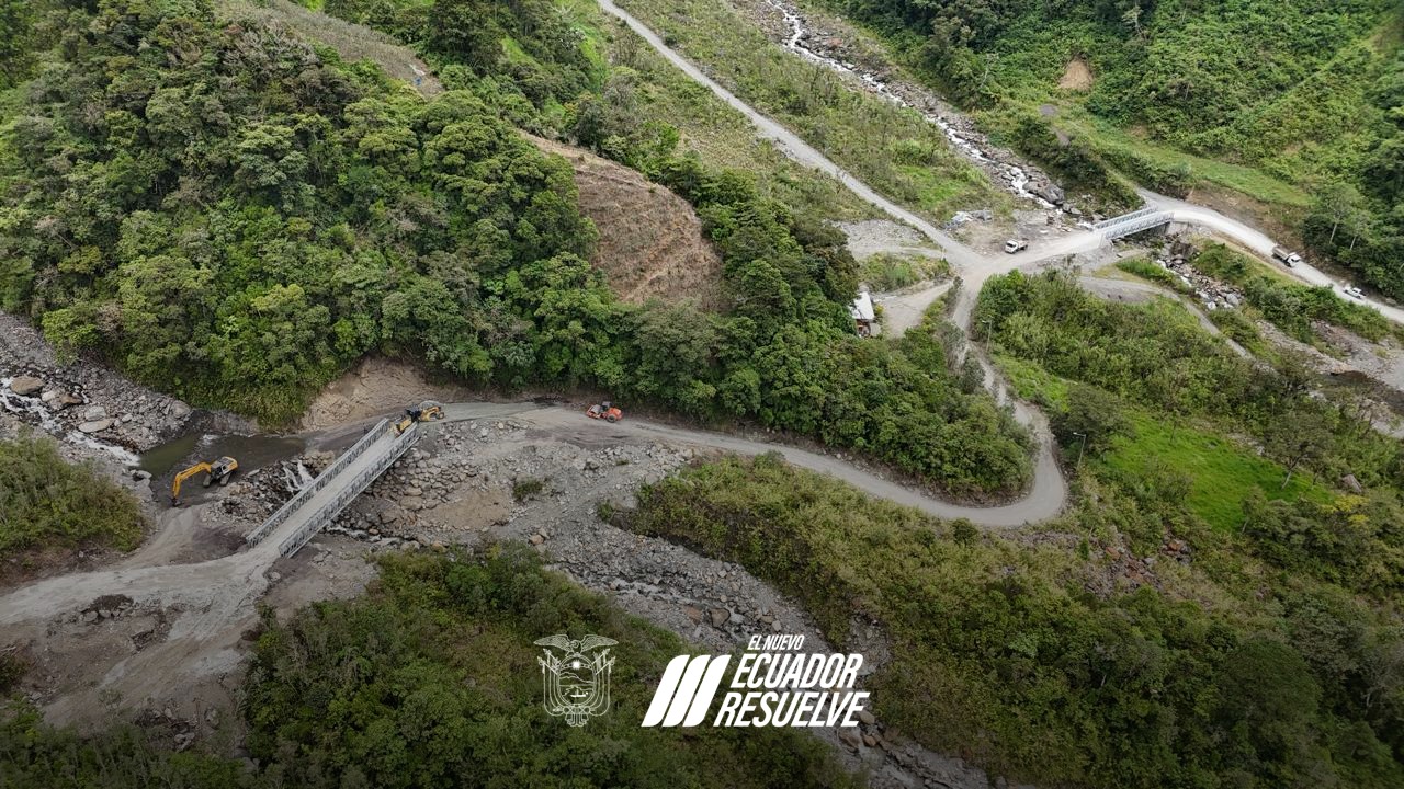 Baños, Tungurahua.- Con el objetivo de mejorar la conectividad vial, el Ministerio de Transporte y Obras Públicas (MTOP) entregó oficialmente dos puentes Bailey, de 24 y 27 metros de longitud, 100% operativos, instalados sobre los ríos Blanco y El Corazón, en la parroquia Ulba, que beneficia directamente a más de 1.500 ciudadanos.