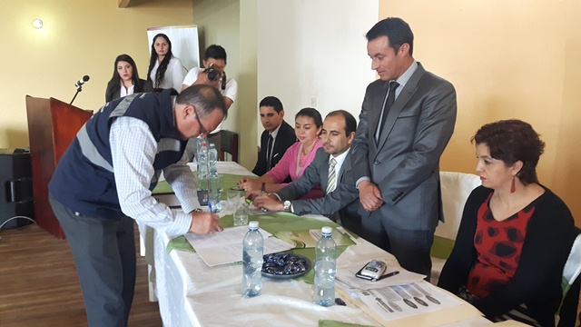 Como homenaje a Pucará por sus 28 años de cantonización, el director Provincial del MTOP del Azuay, Pablo Cordero, entregó el acta de apoyo al alcalde Rogelio Reyes, durante la sesión solemne realizada en el auditorio de la Municipalidad.