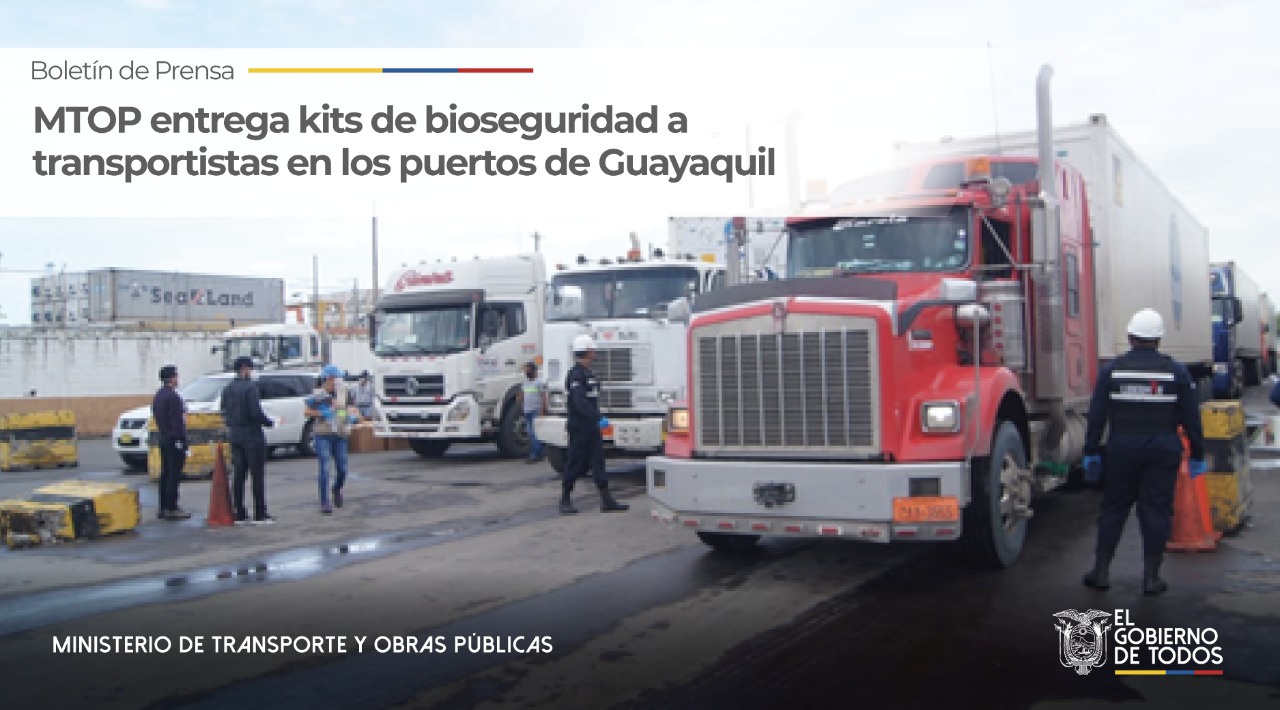 MTOP entrega kits de bioseguridad a transportistas en los puertos de Guayaquil