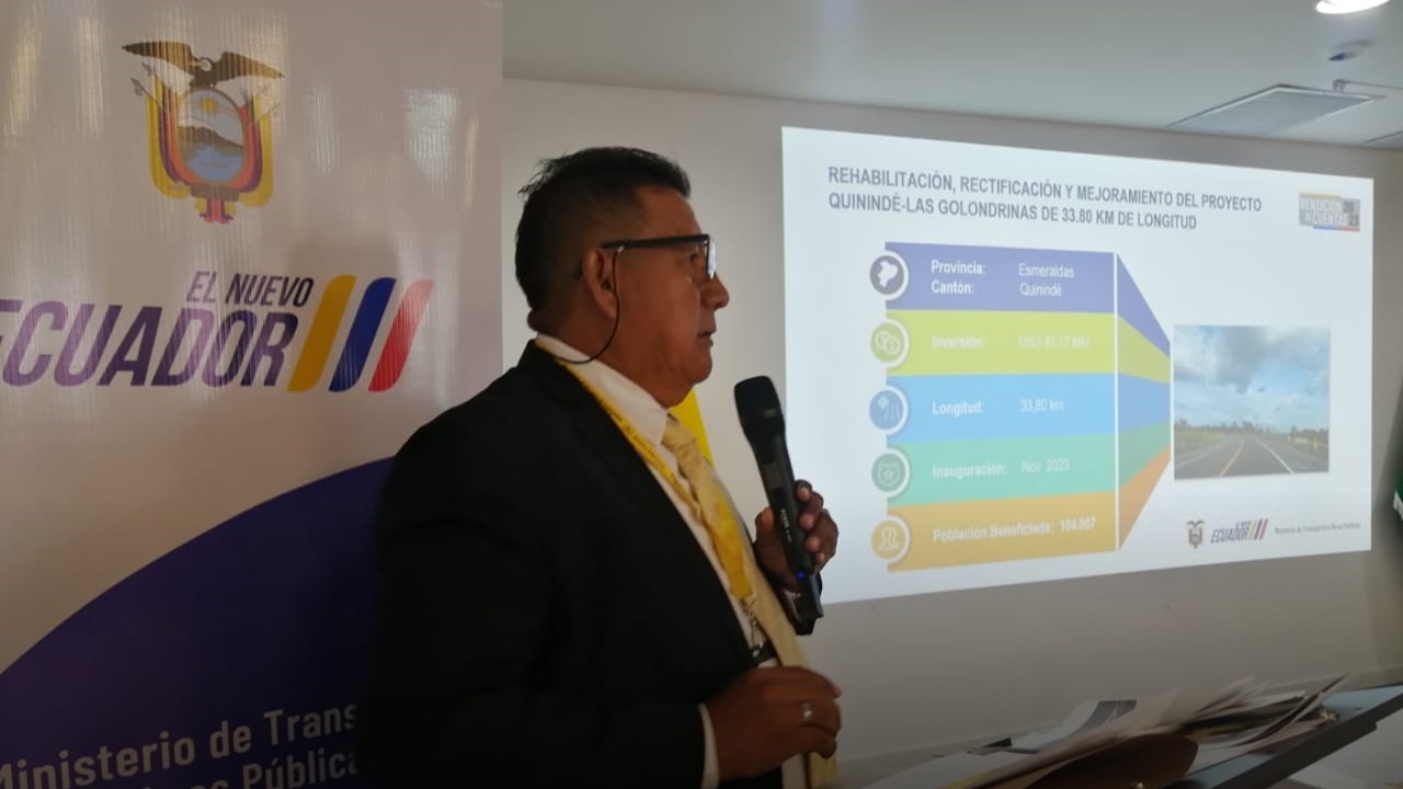 El funcionario destacó que durante el 2023 se entregó una obra emblemática: la rehabilitación, rectificación y mejoramiento de la carretera Quinindé – Las Golondrinas, de 33.80 km de longitud. Este proyecto incluye el paso lateral de Las Golondrinas, de 5 km, el puente sobre el río Guayllabamba, de 177.00 m, el puente sobre el río Duana, de 28.00 m, y el paso peatonal La Sexta, de 20.70 m. Obra que une a las provincias de Pichincha, Esmeraldas e Imbabura con una inversión superior a los USD 41.17 millones y beneficiando a más de 104.007 habitantes locales.