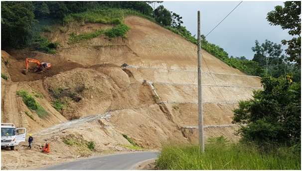 En el cerro de Junín se estabiliza el talud y se construyen cunetas de coronación. La compañía responsable de los trabajos es Fopeca, con una inversión de 4’814.884,15 dólares que incluye la construcción del puente de Bonce.