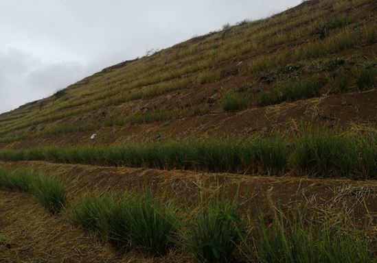 Culminó la siembra de plantas vetiver en el cerro de la Red Vial Estatal E15, sector Playa Bruja.