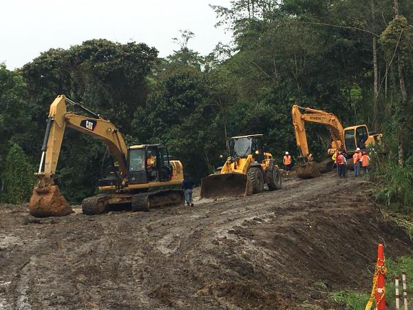 Adicionalmente, esta cartera de Estado facilitará maquinaria y personal para ayudar en el desalojo del material deslizado en el km 58, y demás trabajos relacionados con la rehabilitación de la Calacalí – Río Blanco.